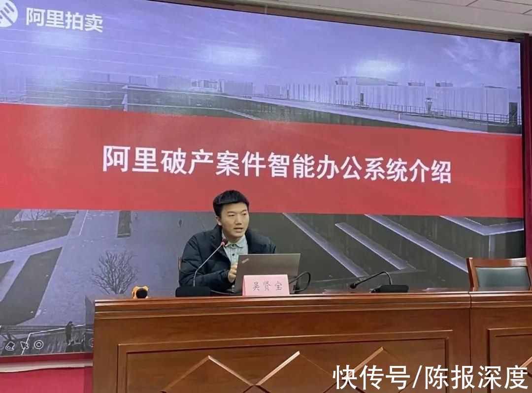 (图为阿里巴巴讲师吴贤宝介绍破产案件智能办公系统)