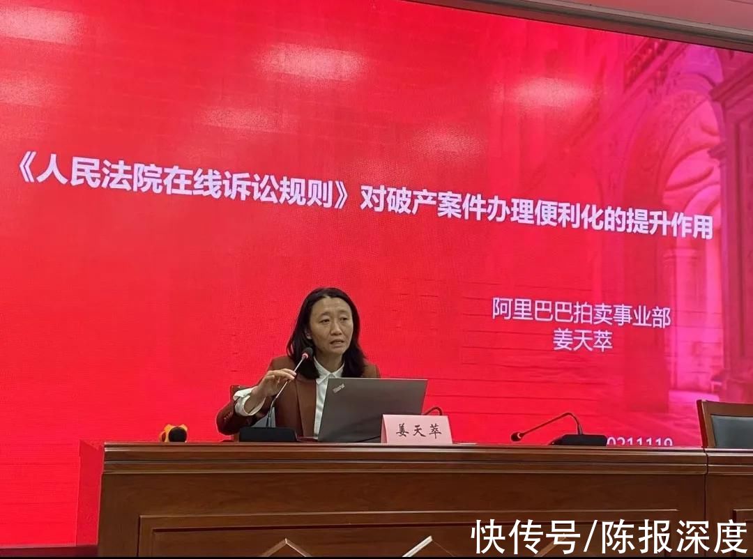 会上,阿里拍卖破产业务总监姜天萃介绍了《人民法院在线诉讼规则》对破产案件办理便利化的提升作用,其中就在线办理的法律效力、在线债权申报和审核、区块链等方面为破产管理人在办理破产案件时提供的便捷化帮助做了详细的讲解。